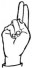 На ћирилици написано БОЖИДАР МЕЋАВА састоји се из 13 слова [?]. Исписано ћириличном једноручном азбуком за глувонеме: